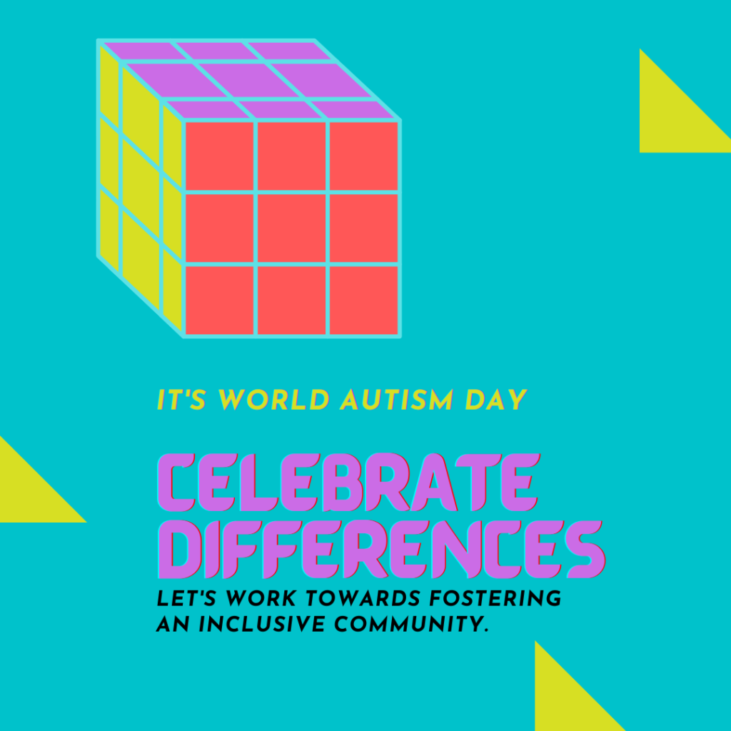 World Autism Awareness Day April 2nd celebrating differences and working towards fostering an inclusive community.